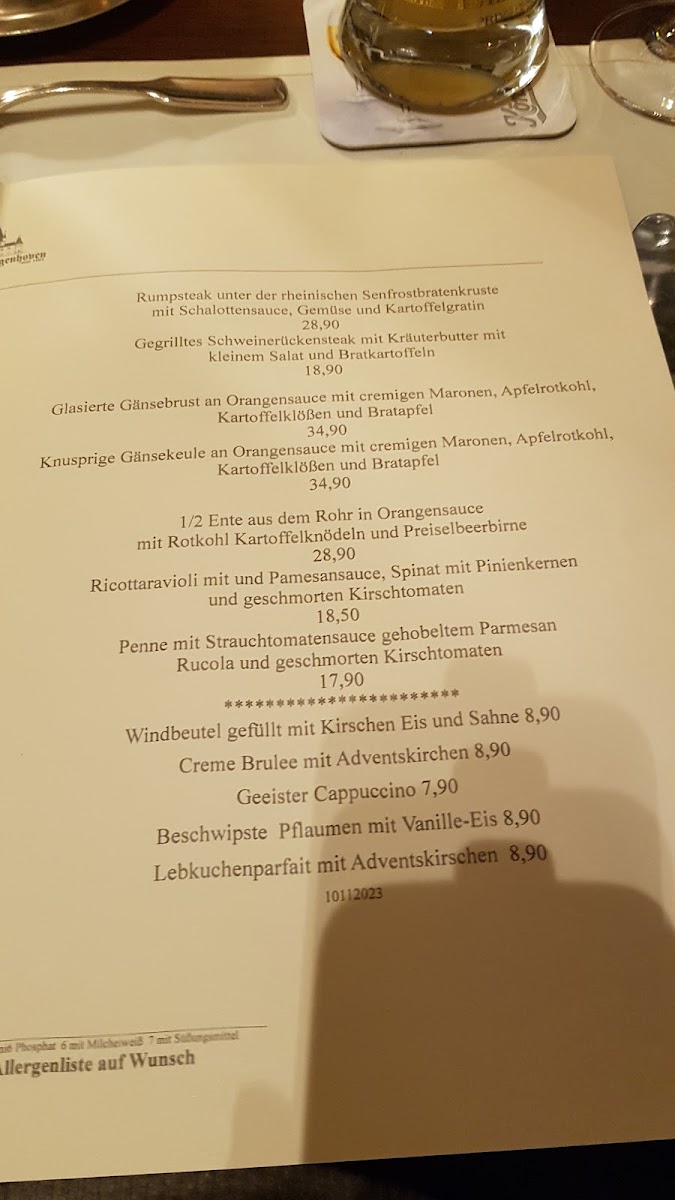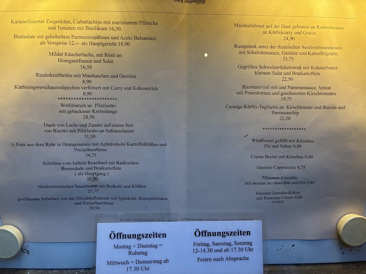 The menu at Burg Ingenhoven offers a thoughtful selection of traditional German dishes crafted with care, presenting a mix of hearty and refined flavors. This is a place where classic flavors meet a relaxed, inviting atmosphere—perfect for a quiet evening meal or a leisurely brunch.
